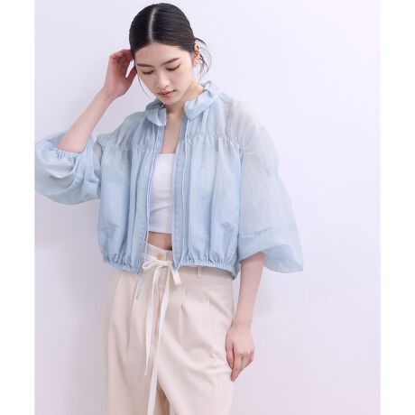 コンパクトな着丈で身頃と袖にたっぷりとギャザーを入れ陰影を付け、透け感にニュアンスをプラス。