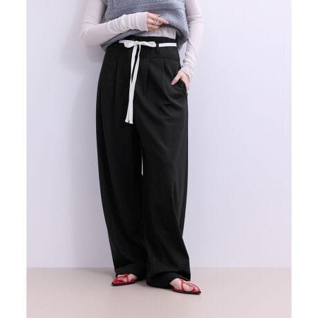 ハイウエストと配色紐がポイントのカーブパンツ。