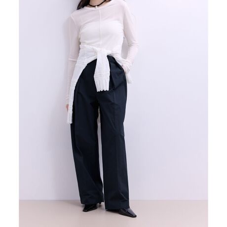 太すぎず細すぎないシルエットに、インタックがカジュアル過ぎないきちんと感をプラス。