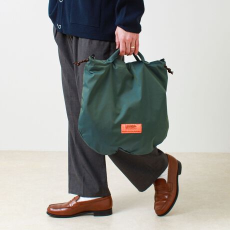 アメリカ・シカゴ発のワークウェアブランド「UNIVERSAL OVERALL(ユニバーサルオーバーオール)」から登場した2WAY仕様の巾着ショルダーバッグ。