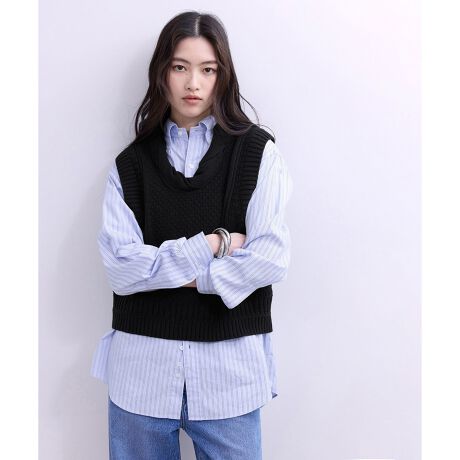 ざっくりとしたラフな風合いを活かし、編地をランダムに配し表情豊かに仕上げたニットベスト。