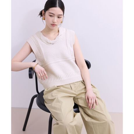 ざっくりとしたラフな風合いを活かし、編地をランダムに配し表情豊かに仕上げたニットベスト。