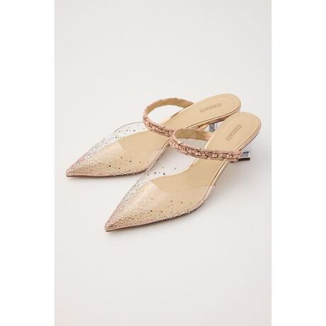 毎年人気のSTACCATOらしいニュアンス感が漂う、オリジナリティあふれるシースルーミュールに新デザインがお目見え。細部にまでこだわりの詰まったPVCに、華やかな〇◇のクリスタルストーンを絶妙なバランスで装飾。ベルト部分にもディテールの凝った3種の編み込みデザインベルトを採用しました。履き口のカッティングも、脚がよりきれいに見えるよう改良。ダイヤカットの抜け感ある変形クリアヒールに、さっと履けるミュールタイプもポイント高い1足です。