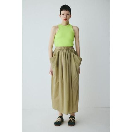 立体感のあるナイロンスカート ポケット部分がたゆんとしたシルエットになっており、イカのようなシルエットにも見えます。 生地をたっぷり使用しているため、動きもあり、表面感も楽しめるアイテム。 同素材のブルゾン(530JSM30-0861 Balloon hem nylon blouson)とセットで着ていただくのもおすすめ。ボリュームナイロンスカート[注意事項] ※画像の商品はサンプルです。実際の商品と仕様、加工が若干異なる場合があります。 ※画像の商品は光の照射や角度、お使いのモニター環境により、実物と色味が異なる場合がございます。 ※着用、お取り扱いの際は、アテンションタグをご確認ください。