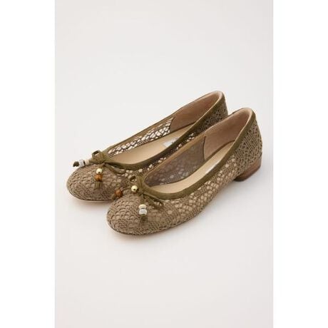 [型番:350JS112-2035]今季の気分にぴったりな、リゾート感も漂う可憐げな雰囲気のクロシェフラット。程よいヌケ感のあるメッシュ×クロシェのコンビに、スクエアのスタックドヒールがニュアンス感のある今っぽい足元にしてくれる、春夏の装いにぴったりな1足です。※履き口は天然の起毛素材(スエード)を使用しているため、摩擦や水分による色落ち・色移りにはご注意ください。