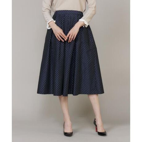 ■デザイン上品なラメ糸を贅沢に織り込んだドットジャガード素材を使用したタックスカート。動くたびにほどよくきらめき、装いに華やかさを添えます。ウエストまわりはすっきりと、裾に向かってふんわり広がるタックフレアシルエットで、クラシカルで上品な印象に。後ろベルトはゴム仕様で、見た目の美しさと快適な着心地を両立しています。同素材のトップスと合わせれば、統一感のある上品なセットアップスタイルが完成。お食事会やパーティーなどの特別なシーンから、デイリーのきれいめコーデまで幅広く活躍する一枚です。■素材先染め高密度ポリエステルタフタのドット柄ジャガード。ドット部分をラメ糸にすることで、上品な素材でありながらも華やかな素材。合繊の産地、福井産で適度な肉感の高見え素材なのに軽やかさがあり、またハリとコシがあるので美しいシルエットが出せるのもこの素材の魅力です。・裏地あり・ポケットあり・ウエスト後ろゴム仕様・水洗い可同素材のブラウス品番:5162182854■サンプル撮影商品画像の商品はサンプルです。実際の商品とはサイズや色味、素材、デザイン等の仕様が若干変更になる場合がございます。■カラーについては、可能な限り実際の商品に近いカラーにて撮影をおこなっておりますが、照明の関係により実際の製品とは色味が違って見える場合があります。またパソコン・スマートフォンなどの環境により、若干製品と画像のカラーが異なる場合もございます。現物と画像のカラー差異については返品理由となりませんので、予めご了承ください。■サイズ表記はあくまで目安となります。