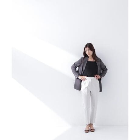 骨格ストレートさんにおすすめ!縦のラインを強調するIラインシルエットのアンクル丈パンツ。ハリのある微ストレッチ素材で肉感を拾いにくく、キレイなラインを叶えます。フロントはノータック仕様にダーツを入れ、腰まわりをすっきりと演出。ウエストベルトの金色ボタンがポイントの、マリンパンツ風デザインです。<素材>ハリのある微ストレッチ素材を使用しています。<詳細>仕様・前ファスナー裏地・なし透け感・なし / 光沢・なし / 伸縮性・なし生地の厚さ・普通※モデルの着用画像の場合、光の当たり具合により、実際の色味と異なって見えることがございます。色味は、商品単体の画像をご参照ください。