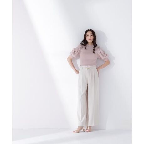 骨格ウェーブさんにおすすめ!骨格ウェーブさんの重心を高く見せてくれる、ハイウエストデザインのベルテッドパンツ。揺れ感のあるとろみ素材で肌なじみの良い優しいカラー展開も、おすすめのポイントです。ゴールドカラーのデザインバックルが、ウエストまわりに上品なアクセントをプラスします。ウエストはゴム仕様で、しっかりフィットしながら快適なはき心地です。<素材>揺れ感のある合繊素材を使用しています。<詳細>仕様・前ファスナー裏地・なし透け感・なし / 光沢・なし / 伸縮性・なし生地の厚さ・普通※モデルの着用画像の場合、光の当たり具合により、実際の色味と異なって見えることがございます。色味は、商品単体の画像をご参照ください。