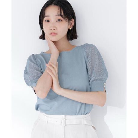 繊細な透かし編みが今年らしいニット。透かし編みのスリーブと袖口リブのゴールドカラー釦がさりげないアクセントになります。襟は抜け感のあるボートネックで女性らしい雰囲気を演出。様々なボトムスと合わせやすく、ドライタッチな糸で夏も着やすい一枚です。<素材>ドライタッチな糸を使用した、ハイゲージのリブ編みニットです。<詳細>仕様・開閉なし裏地・なし透け感・ややあり / 光沢・なし / 伸縮性・あり生地の厚さ・普通※モデルの着用画像の場合、光の当たり具合により、実際の色味と異なって見えることがございます。色味は、商品単体の画像をご参照ください。