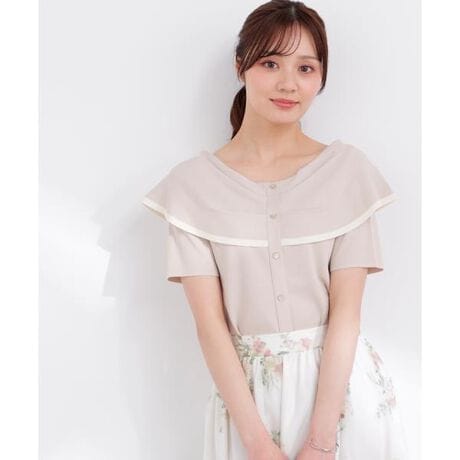 トレンド感のあるケープディテールが目を引くニットトップス。前立てはフェイクボタン仕様で開く心配なく着用いただけます。スカートもパンツも合わせやすく、清涼感のある糸を使用しているので長く活躍できます。