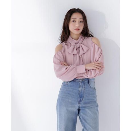 ショルダーの肌見せデザインがポイントのブラウス。後ろの大きめリボンが女性らしさを演出し、ボタンで取り外しも可能です。袖口カフスの内側はシャーリングゴムでフィット。袖山にもギャザーを入れた、ボリューム感のあるスリーブも魅力です。<素材>柔らかい落ち感のある楊柳素材を使用しています。<詳細>仕様・後ろボタン裏地・あり透け感・あり / 光沢・なし / 伸縮性・なし生地の厚さ・薄手 ※モデルの着用画像の場合、光の当たり具合により、実際の色味と異なって見えることがございます。色味は、商品単体の画像をご参照ください。