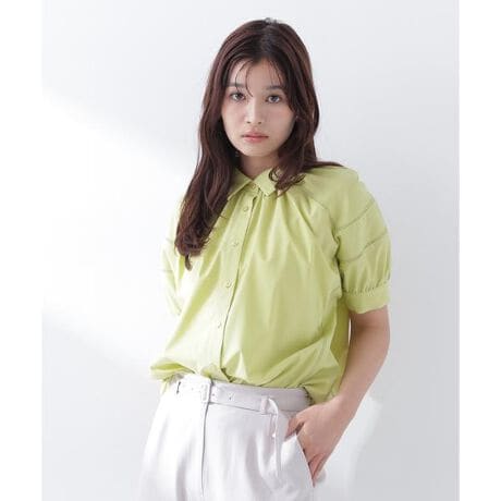 ふんわりとしたパフスリーブで女性らしい柔らかな印象のブラウス。シャツ襟できちんと感があり、甘くなりすぎず上品に着こなせます。前身頃のハシゴレースがさりげないデザインポイント。パンツもスカートも合わせやすく、オンにもオフシーンにも活躍してくれます。<素材>コットンタッチのシャツ素材を使用しています。<詳細>仕様・前ボタン裏地・なし透け感・なし / 光沢・なし / 伸縮性・なし生地の厚さ・普通※モデルの着用画像の場合、光の当たり具合により、実際の色味と異なって見えることがございます。色味は、商品単体の画像をご参照ください。