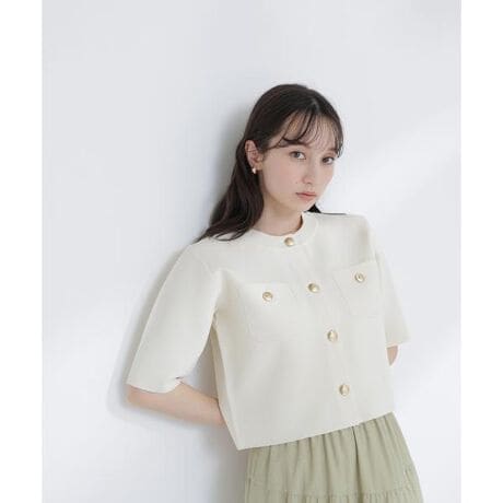 エンブレムボタンニットジャケット半袖