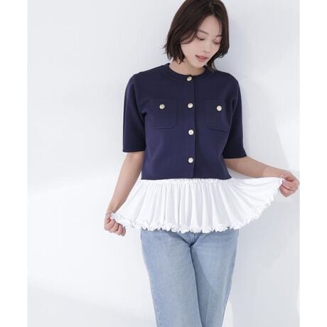 エンブレムボタンニットジャケット半袖