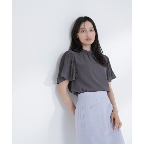 表情のある楊柳生地を使用した、軽やかな印象のフレアスリーブブラウス。袖の細かなプリーツが揺れるたびに女性らしさを演出します。身頃は裏地を付けているため、透け感を気にぜず着ていただけます。<素材>繊細な凹凸感のある楊柳生地を使用しています。<詳細>仕様・後ろボタン裏地・あり透け感・あり / 光沢・なし / 伸縮性・なし生地の厚さ・普通※モデルの着用画像の場合、光の当たり具合により、実際の色味と異なって見えることがございます。色味は、商品単体の画像をご参照ください。