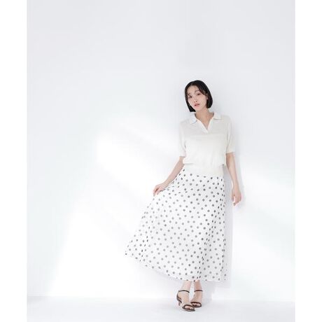 メッシュ素材にドットプリントを施した軽やかなフレアスカート。ウエストまわりはすっきりとさせ、裾に向かって広がるフレアシルエットを演出します。動くたびに軽やかに揺れるフレアシルエットが魅力です。<素材>軽やかなメッシュ素材にドットプリントを施した素材です。<詳細>仕様・後ろファスナー裏地・あり透け感・なし / 光沢・なし / 伸縮性・なし生地の厚さ・薄手 ※モデルの着用画像の場合、光の当たり具合により、実際の色味と異なって見えることがございます。色味は、商品単体の画像をご参照ください。