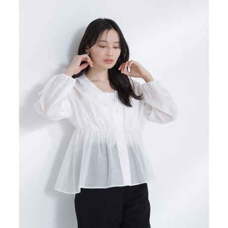 身頃に軽やかな布帛生地を使用したさらっと着られるシャツカーディガン。前立てにニット素材を取り入れた異素材デザインがさりげないアクセントになります。ウエストにギャザーを入れたペプラムシルエットで、女性らしさと体型カバーを両立。羽織りにもトップスにも使えるデザインは、春から夏まで活躍する着回し力の高い一枚です。<素材>ほんのりシアー感のある軽やかな生地を使用しています。<詳細>仕様・前ボタン裏地・なし透け感・ややあり / 光沢・なし / 伸縮性・なし生地の厚さ・普通※モデルの着用画像の場合、光の当たり具合により、実際の色味と異なって見えることがございます。色味は、商品単体の画像をご参照ください。