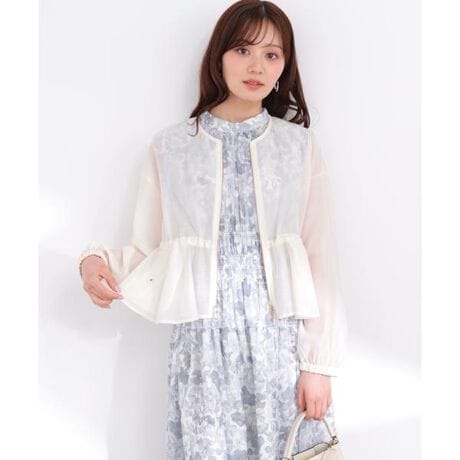 シアー素材を使用したブルゾン。シワになりにくく、ノーカラー仕様でキレイめスタイルとも相性バツグンです。短め丈で、ドロストを絞るとペプラムシルエットになり、脚長効果を狙いながらスタイルアップを叶えます。