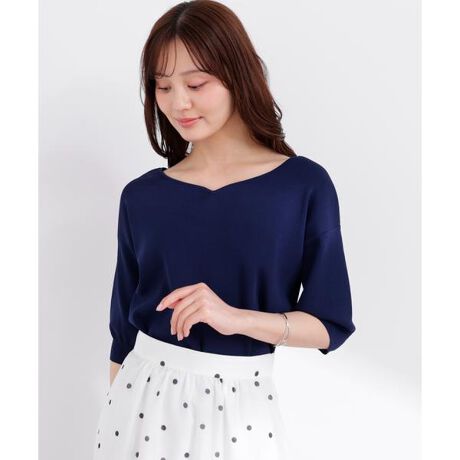 デコルテをキレイに見せるハートカットのドルマンニット。ベーシックなデザインながら今年らしい着丈やシルエットに仕上げています。スカートもパンツも合わせやすく、オンオフ問わず着回せるデザインです。