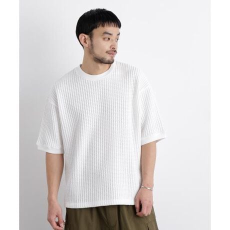 ・編柄の大きめなワッフル素材が魅力の半袖Tシャツ