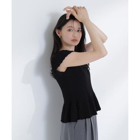 透かし柄編みが華奢で繊細な印象のニット。裾にはレース編みのフリルをあしらい、上品で女性らしい表情に仕見せてくれます。コンパクトなシルエットで、一枚でも着映えするデザイン。キレイめスタイルに取り入れやすく、女性らしさを引き立てる一枚です。<素材>透かし柄の編地で仕立てた、軽やかで繊細なニット素材を使用。レース編みのフリルが映える、上品で柔らかな風合いです。<詳細>仕様・開閉なし裏地・なし透け感・あり / 光沢・なし / 伸縮性・あり生地の厚さ・普通 ※モデルの着用画像の場合、光の当たり具合により、実際の色味と異なって見えることがございます。色味は、商品単体の画像をご参照ください。