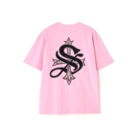 SUPPLIERのシグネチャーデザインの一つであるCross Logoをラインストーンとプリントの組み合わせで背面に配置。