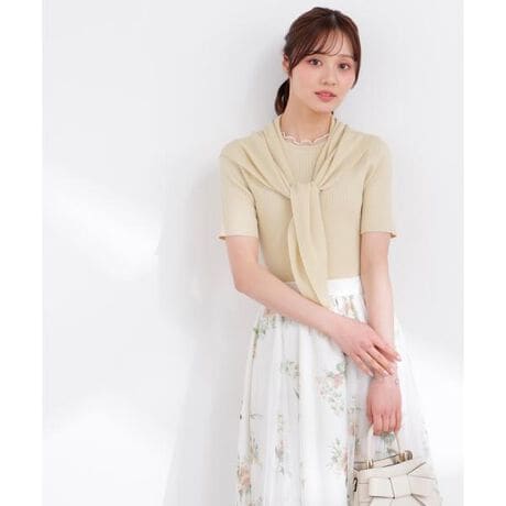 トレンドのトライアングルニットスカーフ付きニット。トップスは人気のシアーデザインを襟に取り入れたデザインで、一枚でも可愛く着られます。ニットスカーフはセット使いはもちろん、単品で他のアイテムと合わせても楽しめます。