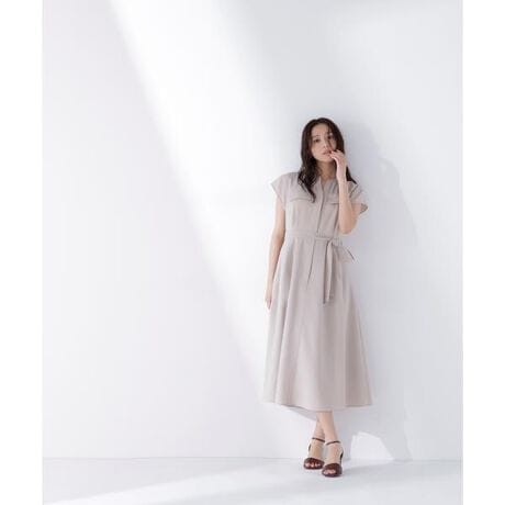 ドライタッチ生地でさらりと着られるシャツワンピース。胸元フラップのカシメがさりげなく光り、華やかなアクセントをプラスします。タックですっきりとしたシルエットを作り、共布のウエストリボンで女性らしいメリハリを演出。一枚でも羽織りでも着回せるデザインは、通勤からお出かけシーンまで幅広く活躍します。<素材>ドライタッチ生地を使用しています。<詳細>仕様・前ボタン裏地・あり透け感・ややあり / 光沢・なし / 伸縮性・なし生地の厚さ・普通※モデルの着用画像の場合、光の当たり具合により、実際の色味と異なって見えることがございます。色味は、商品単体の画像をご参照ください。