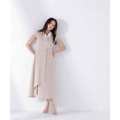 襟が二枚重なったデザインが特徴のシャツワンピース。裾はアシンメトリー仕様で動きのある表情を演出します。シルバーカラーボタンが全体を引き締めるアクセントに。肩先をカバーするフレンチスリーブで腕まわりをすっきり見せつつ、程よく二の腕をカバー。ストライプ柄はシャツ地ならではの爽やかな印象に、無地はしなやかな風合いで上品な印象に見せてくれます。<素材>無地はしなやかで落ち感ありシワになりにくい素材、ストライプ柄はさわやかなシャツ素材を使用しています。<詳細>仕様・左ファスナー裏地・あり透け感・なし / 光沢・なし / 伸縮性・なし生地の厚さ・普通 ※モデルの着用画像の場合、光の当たり具合により、実際の色味と異なって見えることがございます。色味は、商品単体の画像をご参照ください。