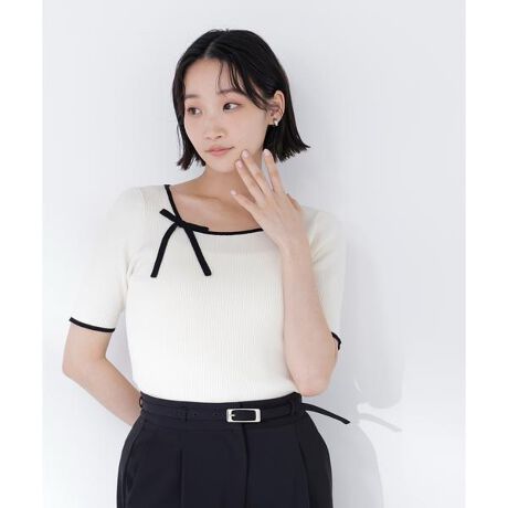アシンメトリーネックに、リボンをあしらったリブトップス。ベーシックなサイズ感とコンパクトなシルエットで、すっきりと着ていただけます。一枚着はもちろん、レイヤードのインナーとしても使いやすいデザイン。さりげないディテールがコーディネートのアクセントになります。<素材>リブ編みニット素材を使用。程よい伸縮性があります。<詳細>仕様・開閉なし裏地・なし透け感・なし / 光沢・なし / 伸縮性・あり生地の厚さ・普通 ※モデルの着用画像の場合、光の当たり具合により、実際の色味と異なって見えることがございます。色味は、商品単体の画像をご参照ください。