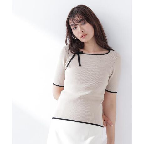 リボンパイピングニット