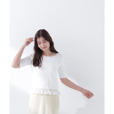 レースドッキングハーフスリーブニット