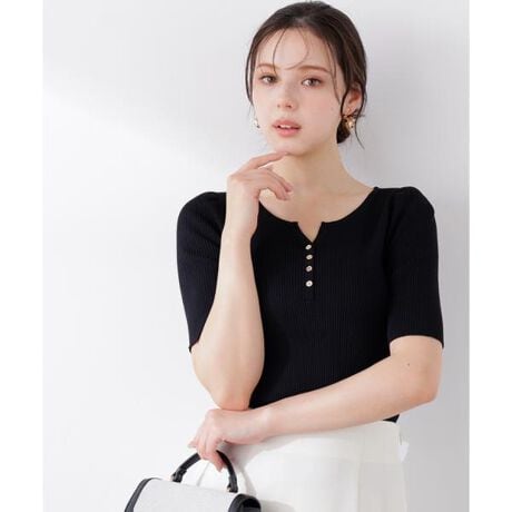 デコルテをキレイに見せるキーネックデザインで、抜け感と上品さを両立したヘンリーネックニット。さりげないパフスリーブで女性らしい丸みをプラスし、一枚で柔らかな印象に見せてくれます。スカートもパンツも合わせやすく、オンにもオフシーンにも着回せます。