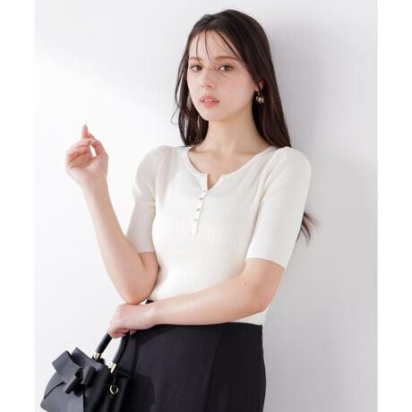 デコルテをキレイに見せるキーネックデザインで、抜け感と上品さを両立したヘンリーネックニット。さりげないパフスリーブで女性らしい丸みをプラスし、一枚で柔らかな印象に見せてくれます。スカートもパンツも合わせやすく、オンにもオフシーンにも着回せます。