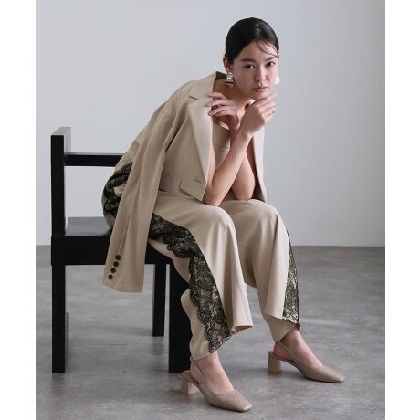 パンツ横のレースが華やかさを添え、シンプルな中に女性らしさをプラスします。