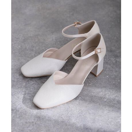 ■ストラップ×スクエアトゥの上品チャンキーヒールパンプス