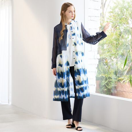 スラブ感のある素材に大胆なグラデーションタイダイプリントを載せたインポート素材のワンピース。トルコ・イスタンブールにあるテキスタイルメーカー「Elissa Stampa」の素材を使用。インポートらしさのある他にはないお洒落なプリント素材です。