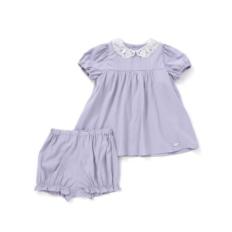 レース襟とパフスリーブが可愛らしいベビー用ブルマ付きワンピース。