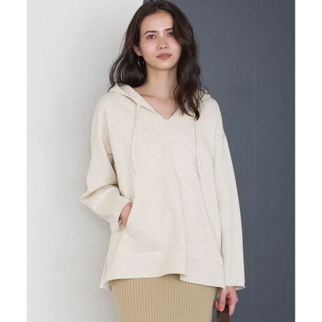 深めのスリットネックでラフにかぶって着られる、大人のためのメキシカンパーカーです。1930年代にアメリカ西海岸のサーファーたちが愛用したデザインをベースに、現代的な解釈でリラックス感あふれる一着に仕上げました。体のラインを拾わないゆったりとしたシルエットと、フロントのカンガルーポケットが程よい抜け感を演出します。カジュアルなアイテムですが、ガーメントツイルのスカートやホールガーメントリブニットのスカートと合わせることで女性らしさを残した洗練されたスタイリングが完成します。休日や気負わないお出かけシーンに最適です。カラーは柔らかくナチュラルな印象のアイボリー系(#002)と、洗練された都会的なグレー系(#004)に、落ち着いた深みのあるダークブラウン系(#035)の3色展開です。