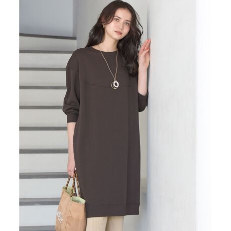 ヨーク部分を求心状に切り替え、裾に向かってふんわりと広がるフレアシルエットに仕上げたデザインワンピースです。膝上のミニ丈はトレンドのニットレギンスやブーツと合わせることで、鮮度のある新しいバランスのコーディネートが完成します。手首がのぞく8分袖は、軽くたくし上げることでこなれたニュアンスが生まれ、季節を超えて軽やかに着用いただけます。リラックス感がありながらもデザイン性のある一枚は、休日のショッピングやカフェ巡りなど気負わずおしゃれを楽しみたいシーンにぴったりです。カラーは、顔周りを明るく見せるアイボリー系(#002)と、都会的でシックなグレー系(#004)に、シーズンムードを高めるダークブラウン系(#035)の3色展開です。