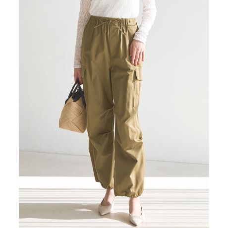 大人が着こなせるよう洗練された雰囲気に仕上げた、パラシュートカーゴパンツです。雪上カモフラージュ用のミリタリーパンツであるスノーカモパンツのディテールをベースに、ハリ感のある素材を用いることで立体的でゆったりとしたボリュームシルエットを表現しました。裾のドローコードを絞ることでシルエットに変化をつけられ、合わせるシューズや気分によって着こなしのアレンジを楽しめます。コンパクトなトップスと合わせてメリハリをつけたり、シャツやニットと合わせたリラックススタイルなど幅広いコーディネートに活躍します。体のラインを拾わないサイズ感で気負わず穿けるのも嬉しいポイントです。カラーは、どんなコーディネートにも馴染む柔らかなベージュ系(#033)と深みのある色合いがシックな印象を与えるモスグリーン系(#053)の2色展開です。