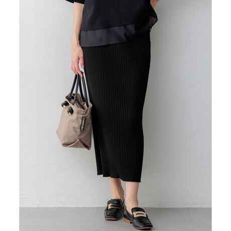 ホールガーメント製法で編み立てた、ストレスフリーな着心地のワイドリブニットスカートです。脇の縫い代がごろつかず、ごわつきを感じることなく快適に着用いただけます。太めのリブ編みが縦のラインを強調し、すっきりとした美しいシルエットを演出。ウエスト部分はゴムの厚みが出にくい見返し仕様にすることで、お腹周りをフラットに見せ、トップスをインした際もスマートに決まります。同素材のカーディガンと合わせたセットアップスタイルはもちろん、シャツやブラウスと合わせたきれいめカジュアルな着こなしもおすすめです。リラックスしたい休日のおうち時間から、軽やかなお出かけシーンまで幅広く活躍します。カラーは、洗練された印象で引き締まるブラック(#005)、ナチュラルで女性らしい柔らかさのあるベージュ(#033)、深みのある色合いが大人っぽいダークブラウン(#035)の3色展開です。