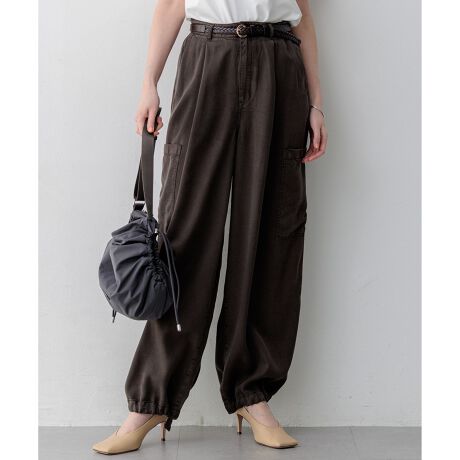 大人のリラックススタイルを格上げするミリタリーディテールのワイドタックパンツです。たっぷりと生地を使った分量感がありながらも、しなやかな落ち感のある素材が身体のラインに自然になじみすっきりとしたシルエットを描きます。シンプルなニットやスウェットと合わせるだけで、気負わないのにおしゃれに見えるニュアンス感のある大人カジュアルスタイルが楽しめます。同素材のシャツと合わせればトレンド感のあるセットアップスタイルとしても活躍します。普段使いはもちろんリラックスして過ごしたい休日や旅行など幅広いシーンにおすすめの一着です。カラーは肌なじみが良く柔らかな印象のベージュ系(#033)と落ち着いたトーンで秋冬の装いを引き締めるダークブラウン系(#035)に上品で洗練された雰囲気を演出するネイビー系(#075)の3色展開です。