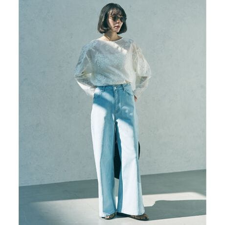 ■デザイン穿くだけで旬な着こなしが叶うバギーデニム。たっぷりのボリューム感が新鮮な、ワイドシルエットがポイントで、ラインを拾わず体型カバーも期待できます。腰回りは程よくフィットさせ、トップスとバランスがとりやすいように仕上げています。ウエストの内側に紐を配しているため、ジャストウエストでメリハリの効いた着こなしも、あえて腰位置を落としたラフな着こなしも、気分に合わせてアレンジが楽しめます。春の気分にぴったりのホワイトデニムにアイスブルー、チノパン感覚で穿けるベージュの展開です。