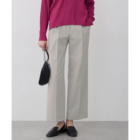 ■デザイン2タックデザインで角カンベルト付きのワイドパンツです。ウエスト部分にタックを入れることで、ヒップ周りに程良いゆとりを持たせ、ボディラインを拾いにくいフォルムのパンツに仕立てました。角カンベルトを使い、トップスをタックインしてウエスト周りをスッキリ見せる着こなしもおすすめです。また、ウエスト部分はゴム内蔵のスマートバック仕様なのも嬉しいポイント。単品はもちろん、同シリーズのジャケットやジレ合わせでセットアップでの着用もおすすめです。
