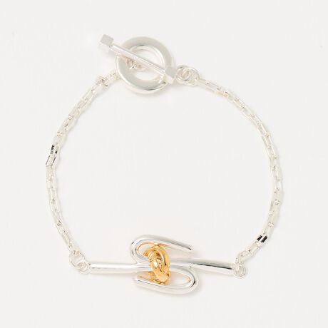 シルバーカラーとゴールドカラーの素材を使用した、“絆”をイメージしたモチーフのブレスレット。