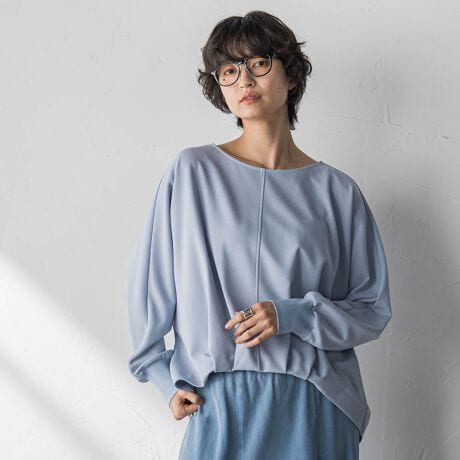 まるでタックINしたような、立体的な前裾がポイントのドルマンプルオーバー。
