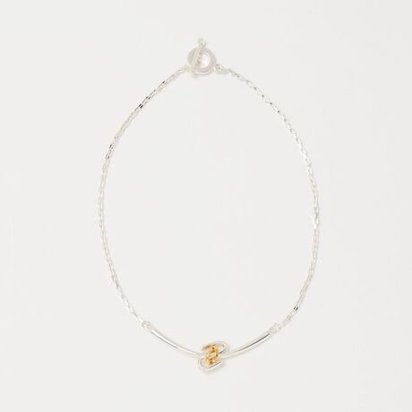 シルバーカラーとゴールドカラーの素材を使用した、“絆”をイメージしたモチーフのチョーカーネックレス。