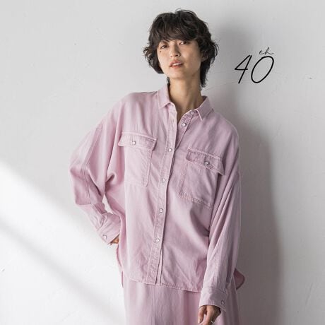 心浮き立つきれい色を、製品染めでほんのりスモーキーに染め上げた、ドルマンシャツ。