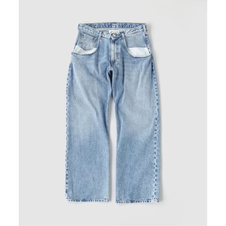 クラシックなデニムジーンズが、秋冬コレクションのためにアップデートされました。フロントポケットのコントラストの効いたホワイトのインサートは意図的に大きく裂け、強いインパクトを生み出しています。ストーンウォッシュ加工のコットン製で、リラックスフィット、フルレングスのワイドなストレートレッグが特徴です。コントラストを生み出すキャメルカラーのトップステッチがポケット5つ、ベルトループ、縫い目に施されています。